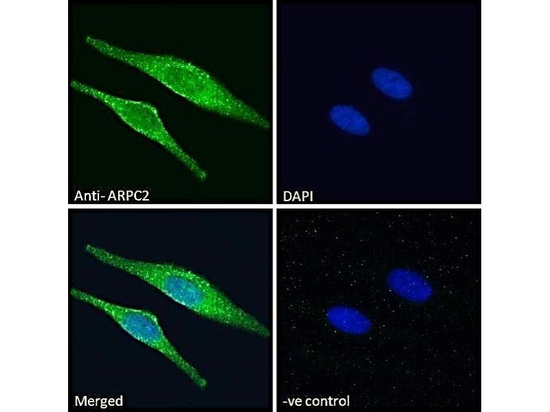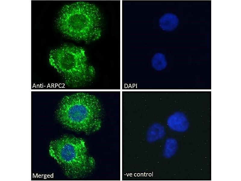 : "Initiation of lamellipodia and ruffles involves cooperation between mDia1 and the Arp2/3 complex." in: Journal of cell science, Vol. 128, Issue 20, pp. 3796-810, (2015) (PubMed).: "Proteomic analysis identifies an NADPH oxidase 1 (Nox1)-mediated role for actin-related protein 2/3 complex subunit 2 (ARPC2) in promoting smooth muscle cell migration." in: International journal of molecular sciences, Vol. 14, Issue 10, pp. 20220-35, (2013) (PubMed).