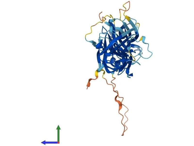 Members of arrestin/beta-arrestin protein family are thought to participate in agonist-mediated desensitization of G-protein-coupled receptors and cause specific dampening of cellular responses to stimuli such as hormones, neurotransmitters, or sensory signals. Arrestin beta 2, like arrestin beta 1, was shown to inhibit beta-adrenergic receptor function in vitro. It is expressed at high levels in the central nervous system and may play a role in the regulation of synaptic receptors. Besides the brain, a cDNA for arrestin beta 2 was isolated from thyroid gland, and thus it may also be involved in hormone-specific desensitization of TSH receptors. Multiple alternatively spliced transcript variants encoding different isoforms have been found for this gene. [provided by RefSeq, Mar 2012].