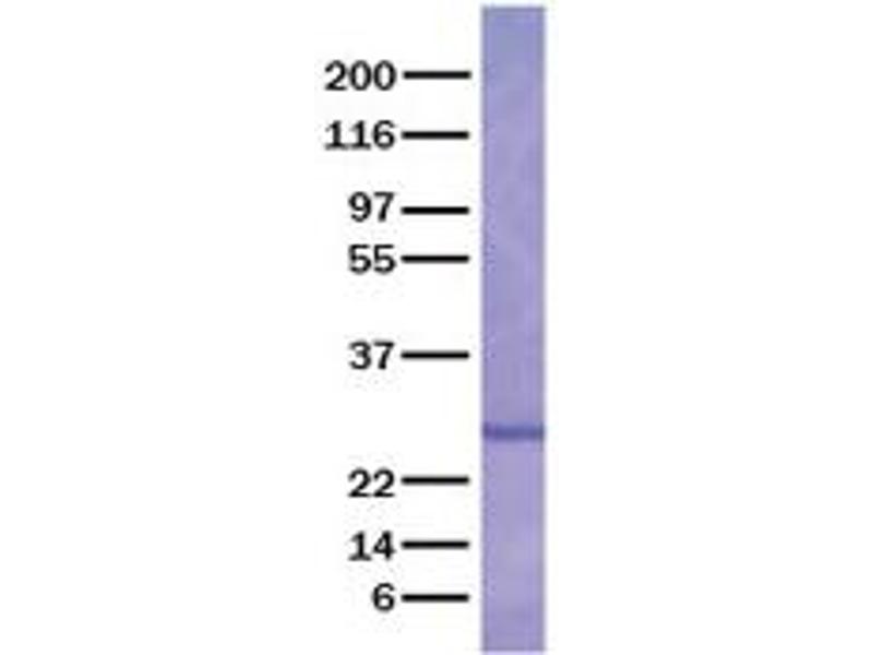 The purity of the protein is greater than 95 % as determined by SDS-PAGE and Coomassie blue staining.