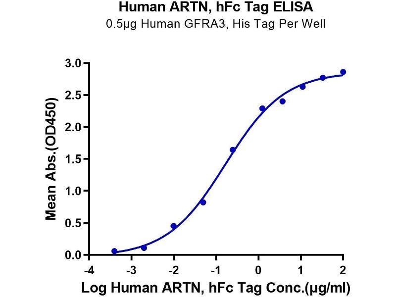 The protein encoded by this gene is a member of the glial cell line-derived neurotophic factor (GDNF) family of ligands which are a group of ligands within the TGF-beta superfamily of signaling molecules. GDNFs are unique in having neurotrophic properties and have potential use for gene therapy in neurodegenerative disease. Artemin has been shown in culture to support the survival of a number of peripheral neuron populations and at least one population of dopaminergic CNS neurons. Its role in the PNS and CNS is further substantiated by its expression pattern in the proximity of these neurons. This protein is a ligand for the RET receptor and uses GFR-alpha 3 as a coreceptor. Multiple transcript variants encoding different isoforms have been found for this gene. [provided by RefSeq, Oct 2008].