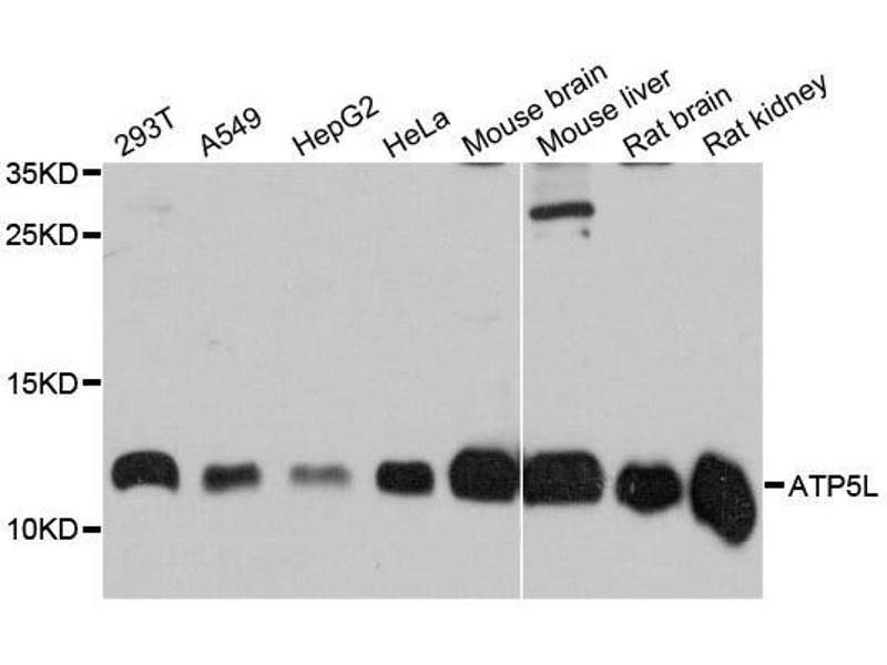 ATP synthase, H+ transporting, mitochondrial Fo complex, subunit G (Atp5l) AntikörperATP synthase, H+ transporting, mitochondrial F0 complex, subunit G (Atp5l) Antikörper