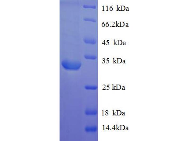 The purity of the protein is greater than 95 % as determined by SDS-PAGE and Coomassie blue staining.