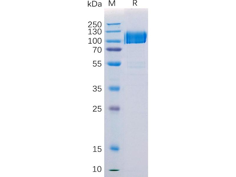 The purity of the protein is greater than 85 % as determined by SDS-PAGE and Coomassie blue staining.