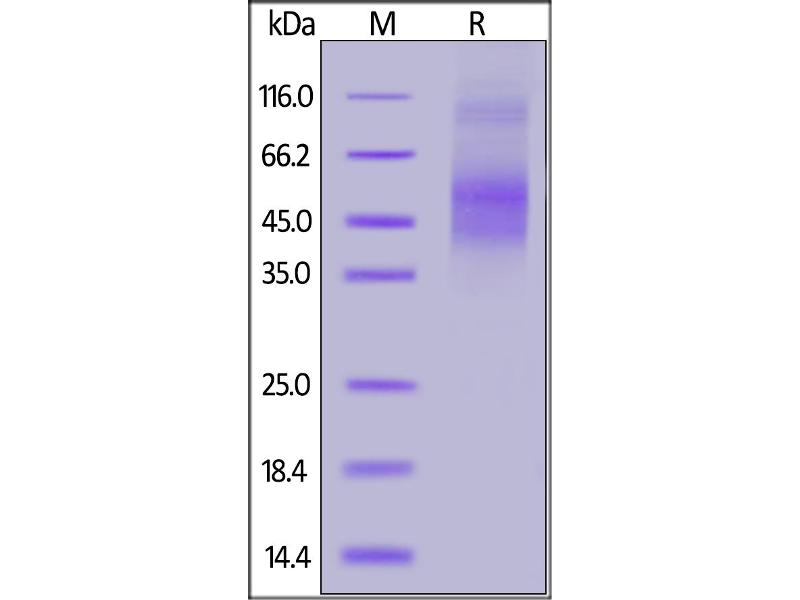 The purity of the protein is greater than 90 % as determined by SDS-PAGE and Coomassie blue staining.