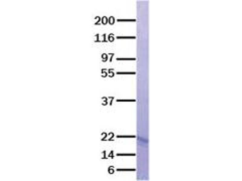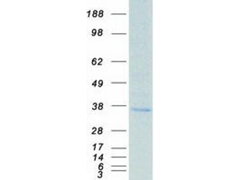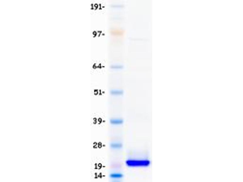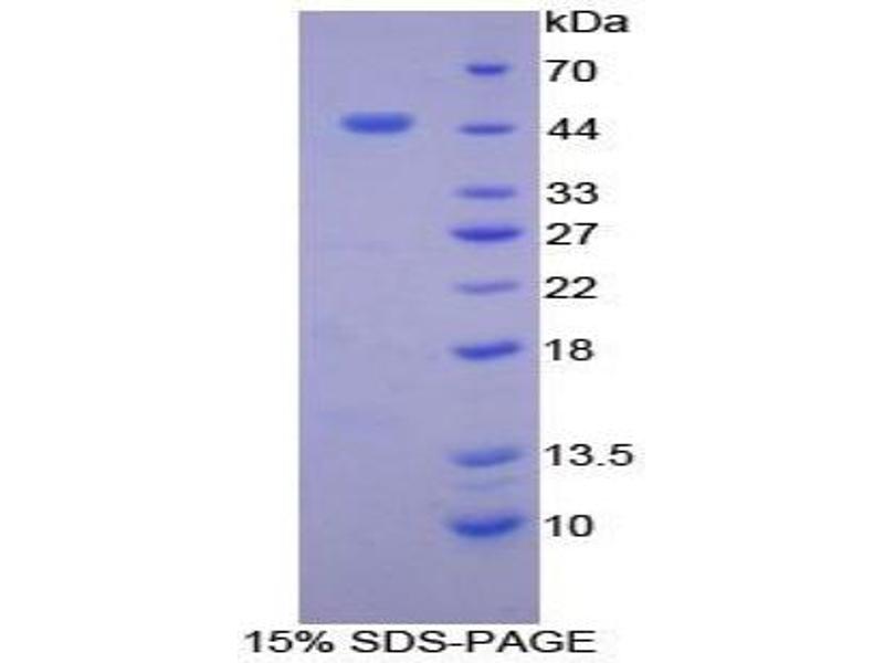 The purity of the protein is greater than 90 % as determined by SDS-PAGE and Coomassie blue staining.