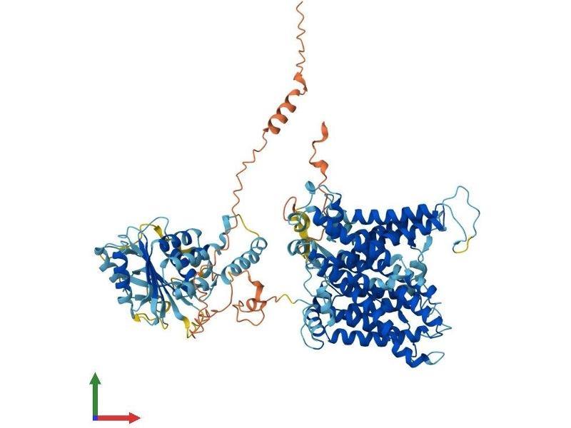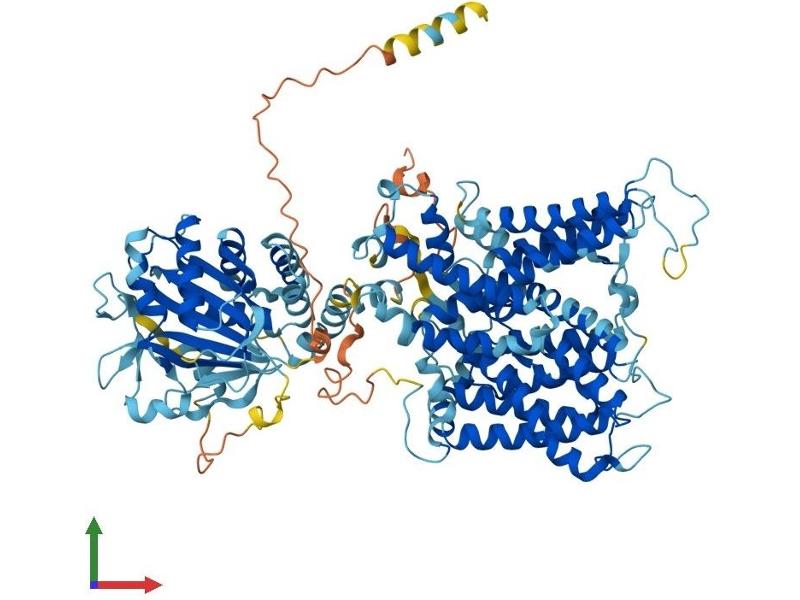 The protein encoded by this gene is part of the anion exchanger (AE) family and is expressed in the erythrocyte plasma membrane, where it functions as a chloride/bicarbonate exchanger involved in carbon dioxide transport from tissues to lungs. The protein comprises two domains that are structurally and functionally distinct. The N-terminal 40kDa domain is located in the cytoplasm and acts as an attachment site for the red cell skeleton by binding ankyrin. The glycosylated C-terminal membrane-associated domain contains 12-14 membrane spanning segments and carries out the stilbene disulphonate-sensitive exchange transport of anions. The cytoplasmic tail at the extreme C-terminus of the membrane domain binds carbonic anhydrase II. The encoded protein associates with the red cell membrane protein glycophorin A and this association promotes the correct folding and translocation of the exchanger. This protein is predominantly dimeric but forms tetramers in the presence of ankyrin. Many mutations in this gene are known in man, and these mutations can lead to two types of disease: destabilization of red cell membrane leading to hereditary spherocytosis, and defective kidney acid secretion leading to distal renal tubular acidosis. Other mutations that do not give rise to disease result in novel blood group antigens, which form the Diego blood group system. Southeast Asian ovalocytosis (SAO, Melanesian ovalocytosis) results from the heterozygous presence of a deletion in the encoded protein and is common in areas where Plasmodium falciparum malaria is endemic. One null mutation in this gene is known, resulting in very severe anemia and nephrocalcinosis. [provided by RefSeq, Jul 2008].