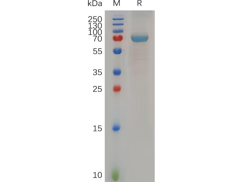 The purity of the protein is greater than 85 % as determined by SDS-PAGE and Coomassie blue staining.