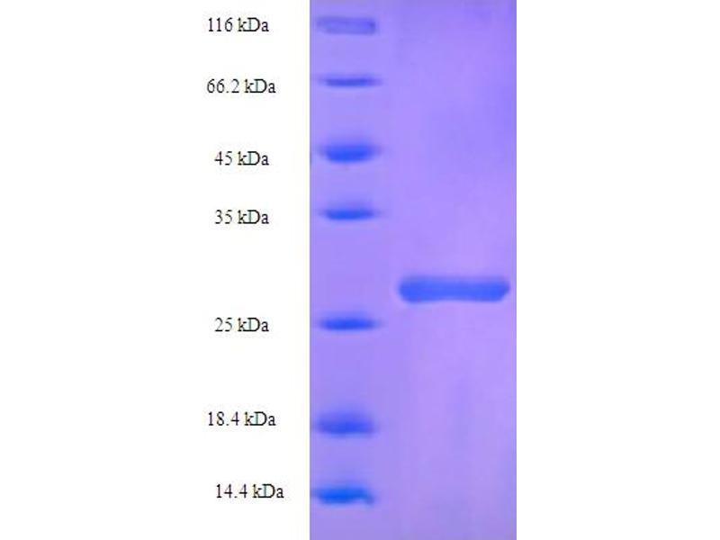 The purity of the protein is greater than 95 % as determined by SDS-PAGE and Coomassie blue staining.