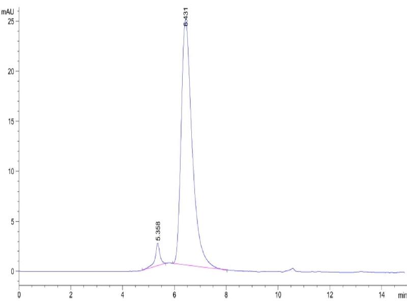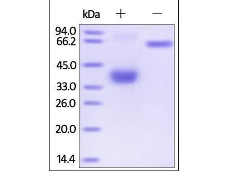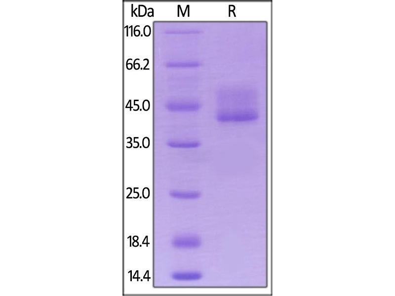 The purity of the protein is greater than 95 % as determined by SDS-PAGE and Coomassie blue staining.