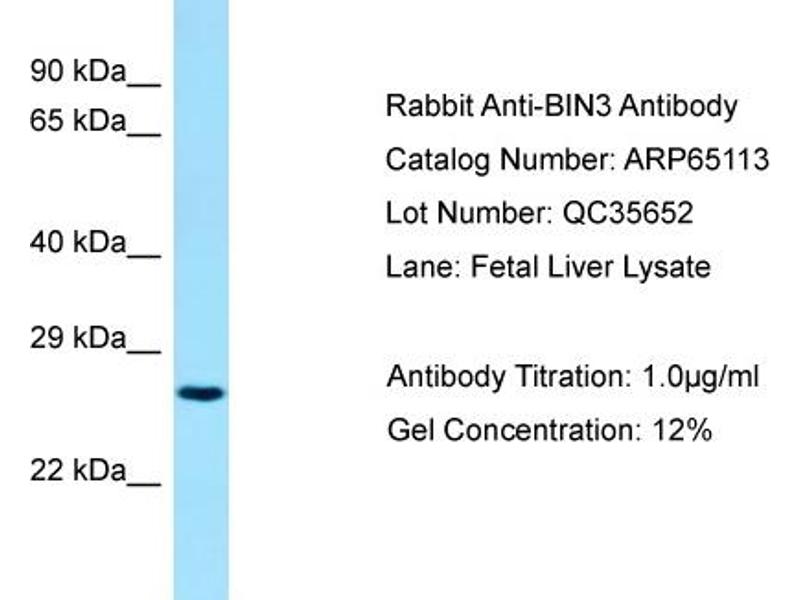 : "Human BIN3 complements the F-actin localization defects caused by loss of Hob3p, the fission yeast homolog of Rvs161p." in: The Journal of biological chemistry, Vol. 276, Issue 24, pp. 21670-7, (2001) (PubMed).Aliase für BIN3 Antikörper