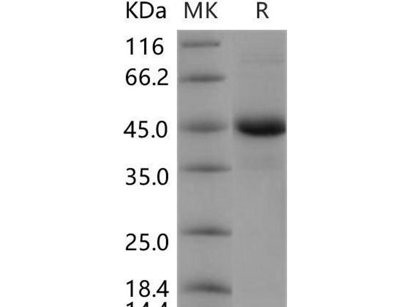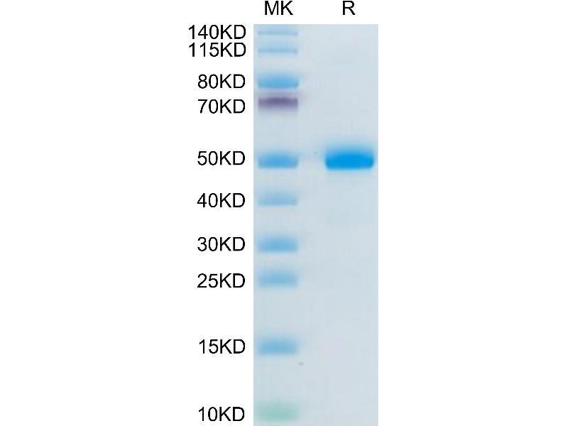 The purity of the protein is greater than 95 % as determined by SDS-PAGE and Coomassie blue staining.