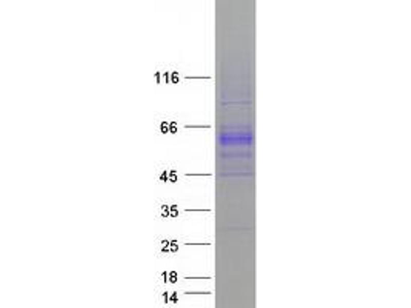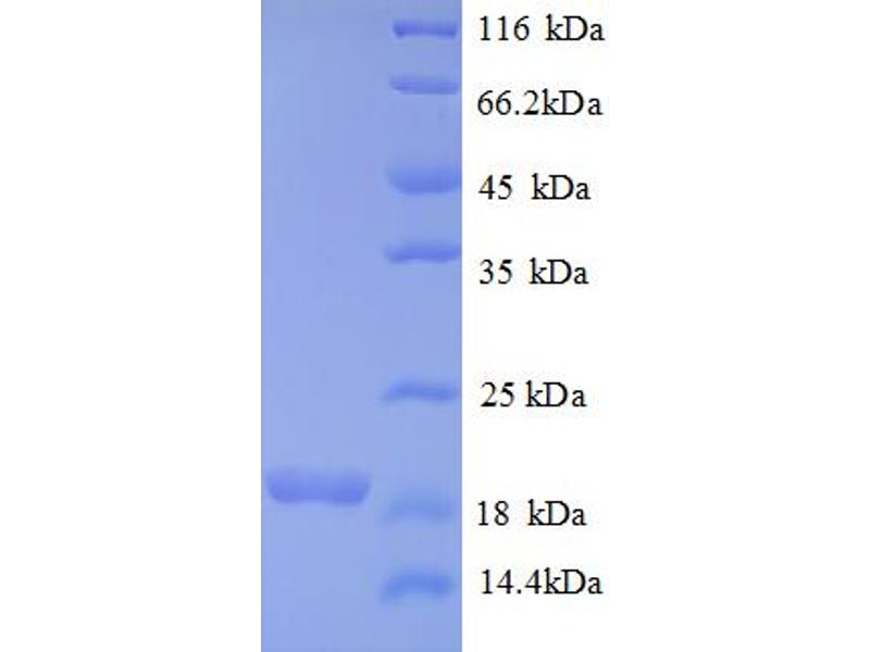 The purity of the protein is greater than 85 % as determined by SDS-PAGE and Coomassie blue staining.