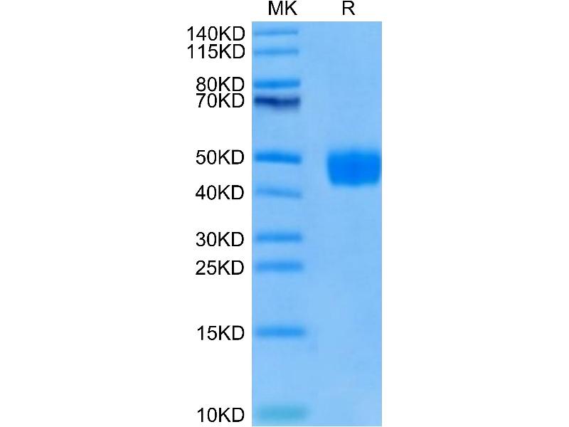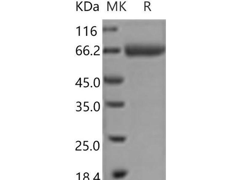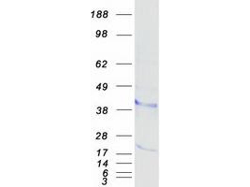 The purity of the protein is greater than 95 % as determined by SDS-PAGE and Coomassie blue staining.