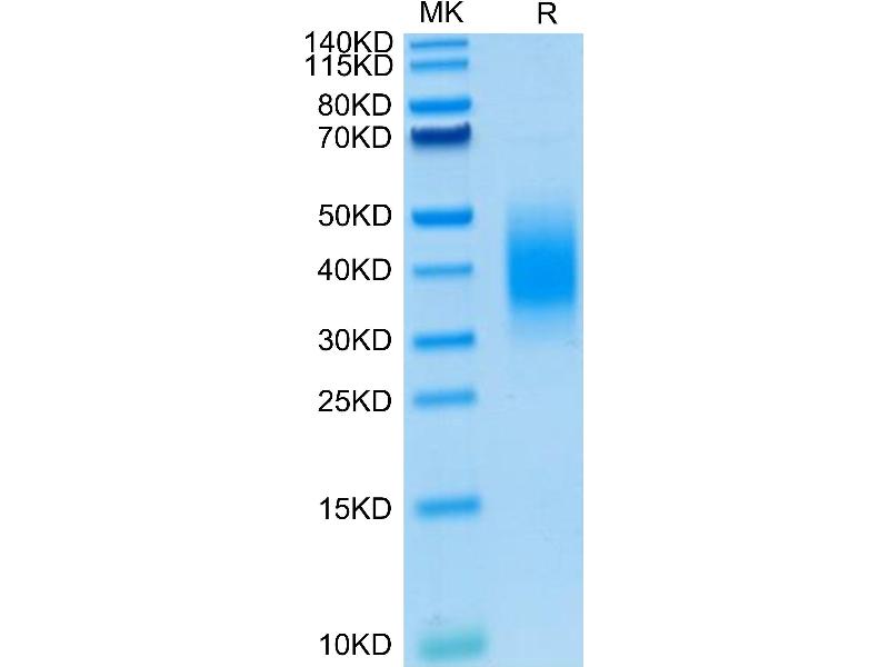 The purity of the protein is greater than 95 % as determined by SDS-PAGE and Coomassie blue staining.