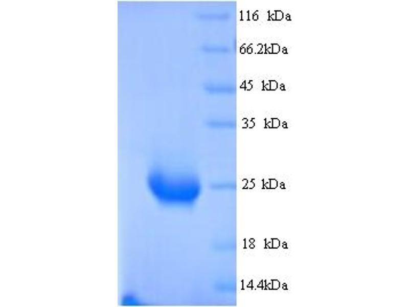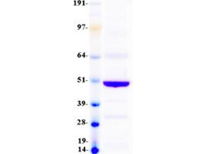 The purity of the protein is greater than 85 % as determined by SDS-PAGE and Coomassie blue staining.