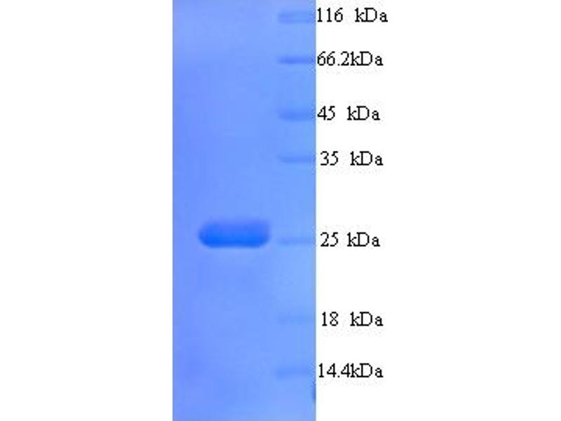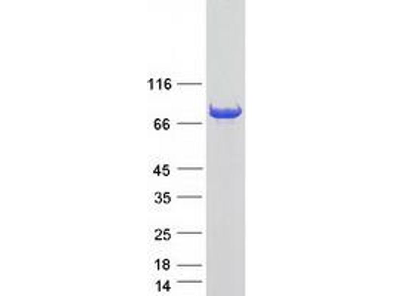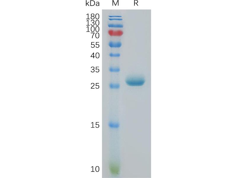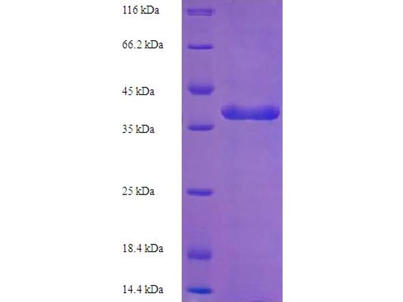 The purity of the protein is greater than 85 % as determined by SDS-PAGE and Coomassie blue staining.