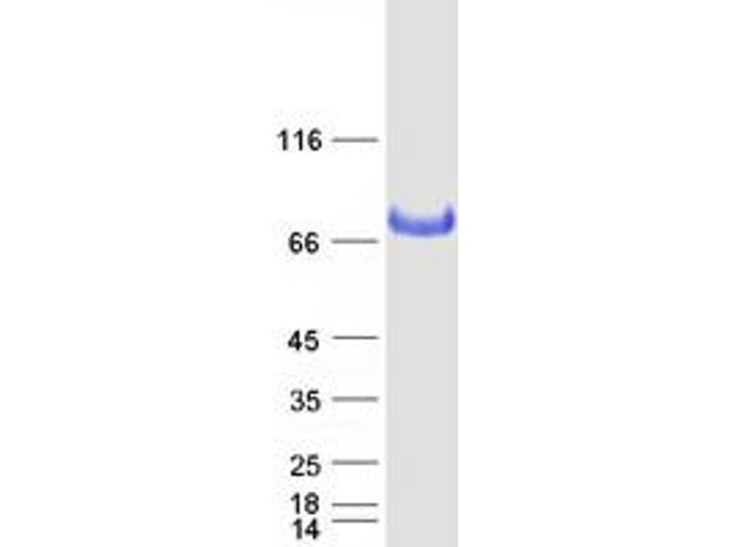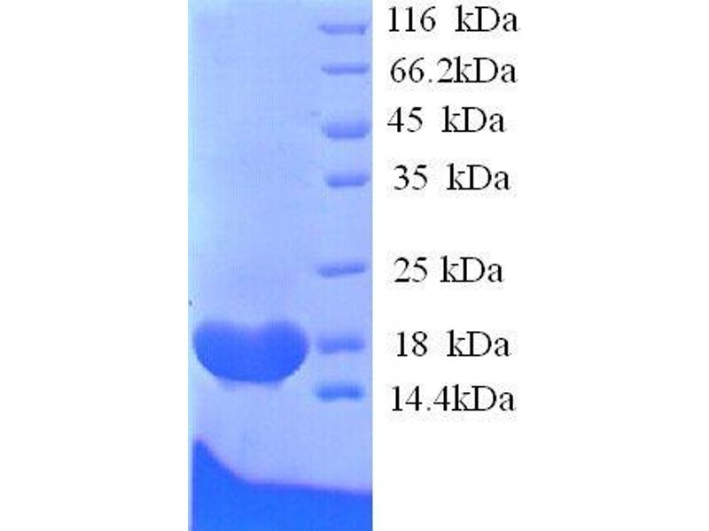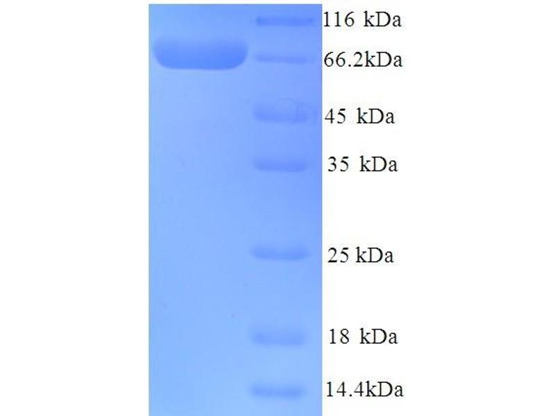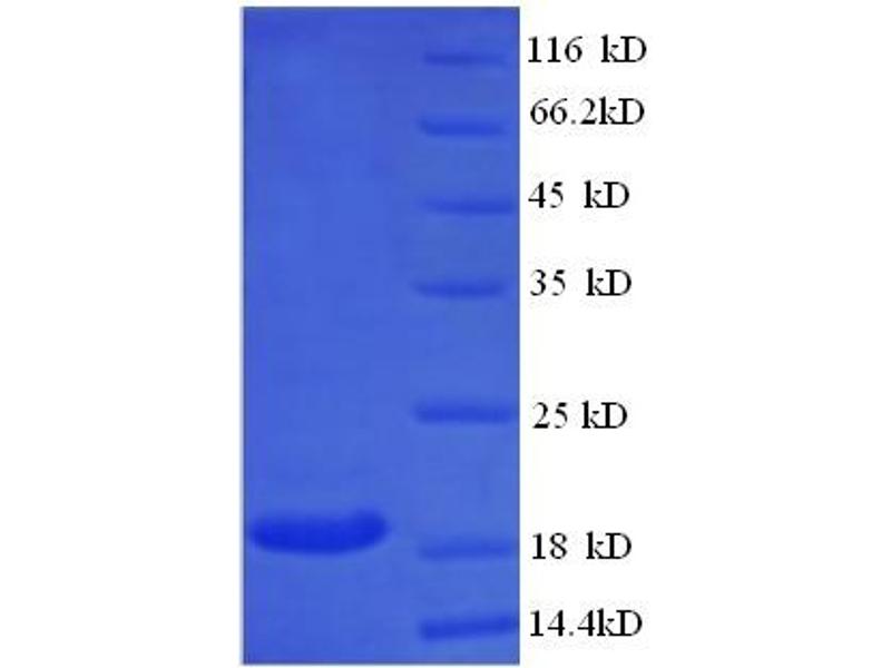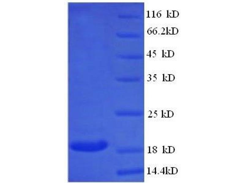 The purity of the protein is greater than 85 % as determined by SDS-PAGE and Coomassie blue staining.