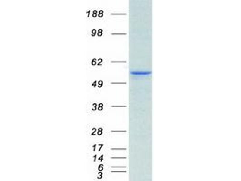 The purity of the protein is greater than 95 % as determined by SDS-PAGE and Coomassie blue staining.