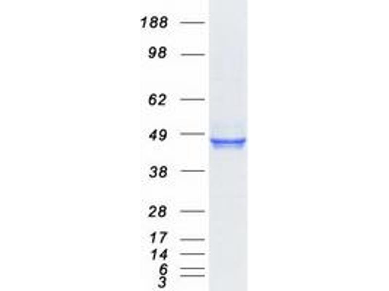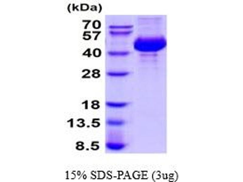 The purity of the protein is greater than 95 % as determined by SDS-PAGE and Coomassie blue staining.