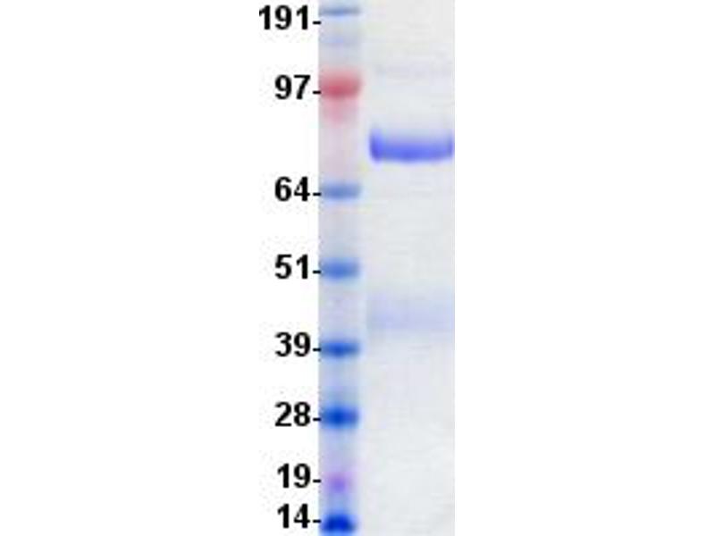 The purity of the protein is greater than 95 % as determined by SDS-PAGE and Coomassie blue staining.