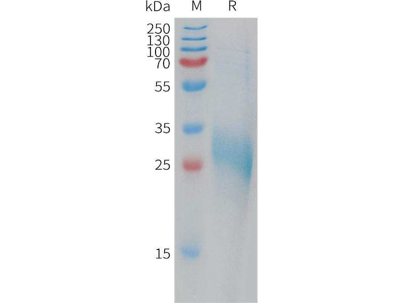 The purity of the protein is greater than 85 % as determined by SDS-PAGE and Coomassie blue staining.