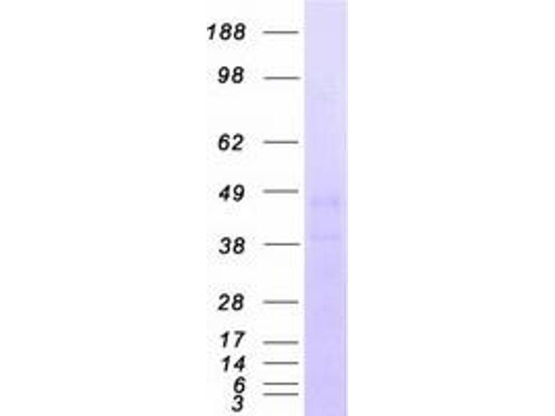 The purity of the protein is greater than 95 % as determined by SDS-PAGE and Coomassie blue staining.