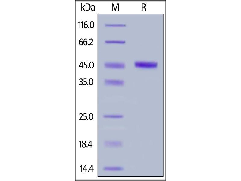 The purity of the protein is greater than 85 % as determined by SDS-PAGE and Coomassie blue staining.