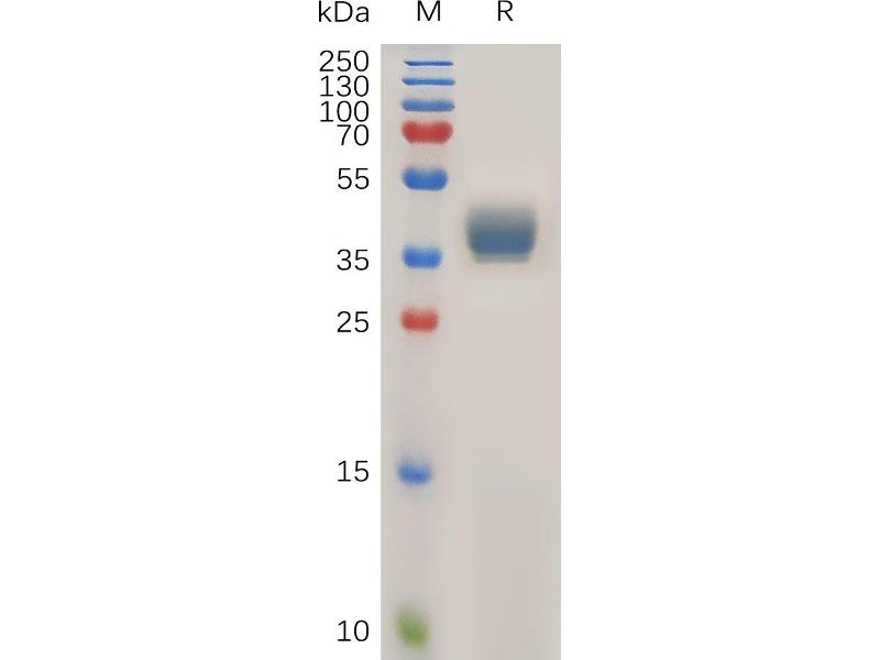 The purity of the protein is greater than 95 % as determined by SDS-PAGE and Coomassie blue staining.
