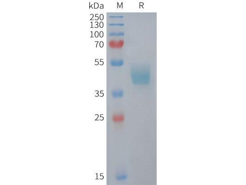 The purity of the protein is greater than 95 % as determined by SDS-PAGE and Coomassie blue staining.
