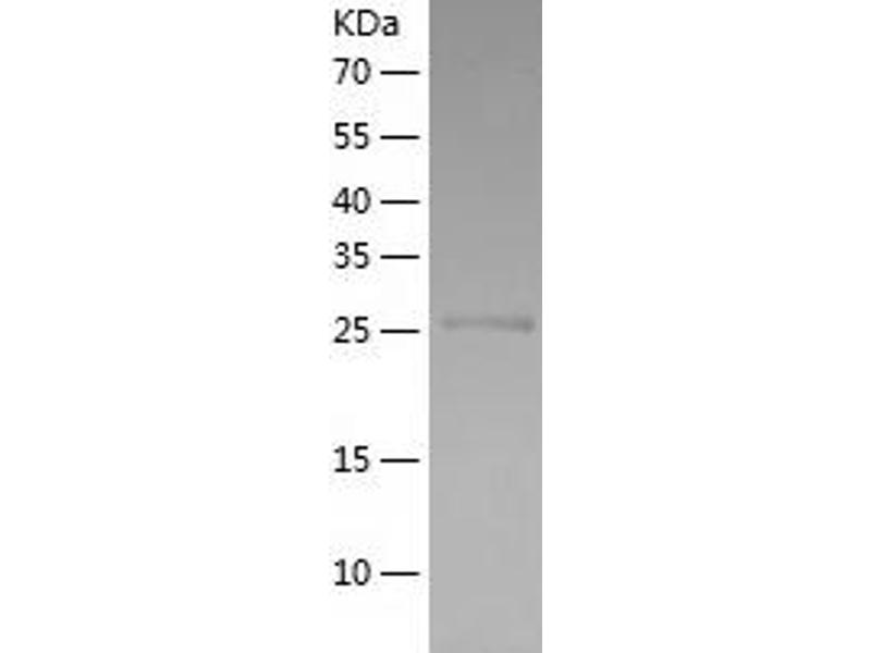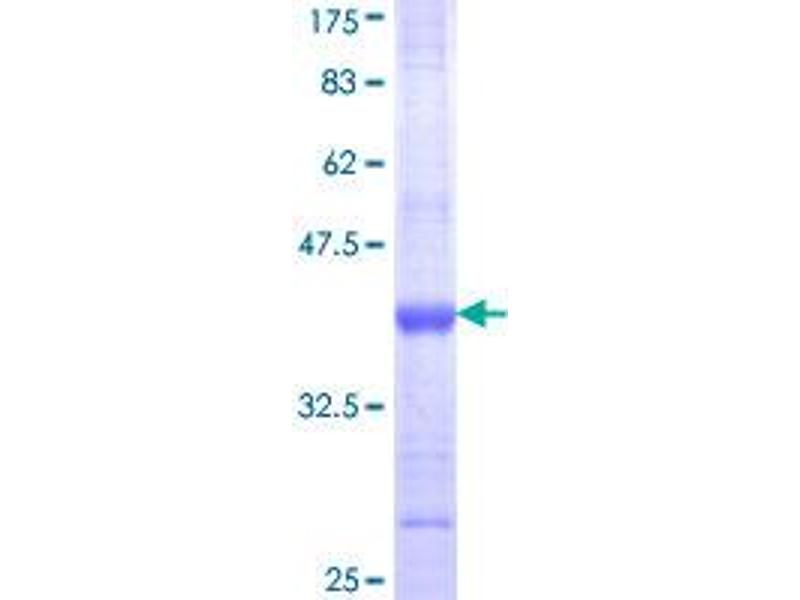 The purity of the protein is greater than 90 % as determined by SDS-PAGE and Coomassie blue staining.