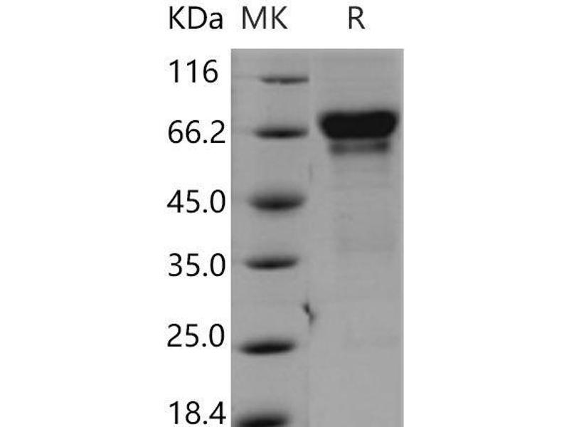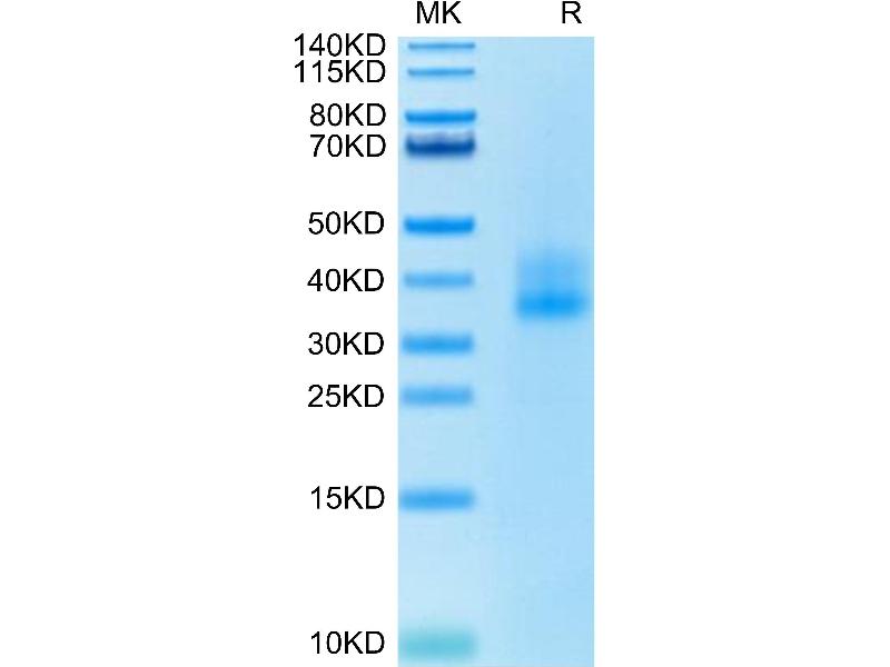 The purity of the protein is greater than 95 % as determined by SDS-PAGE and Coomassie blue staining.