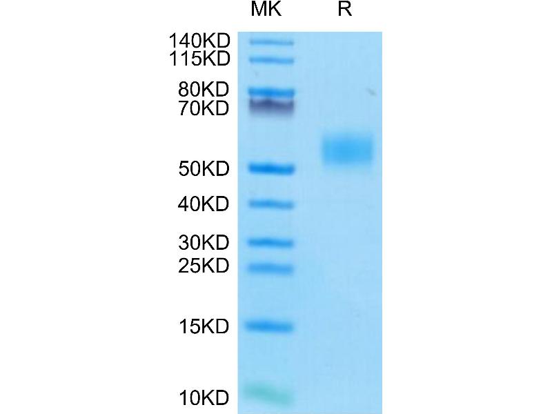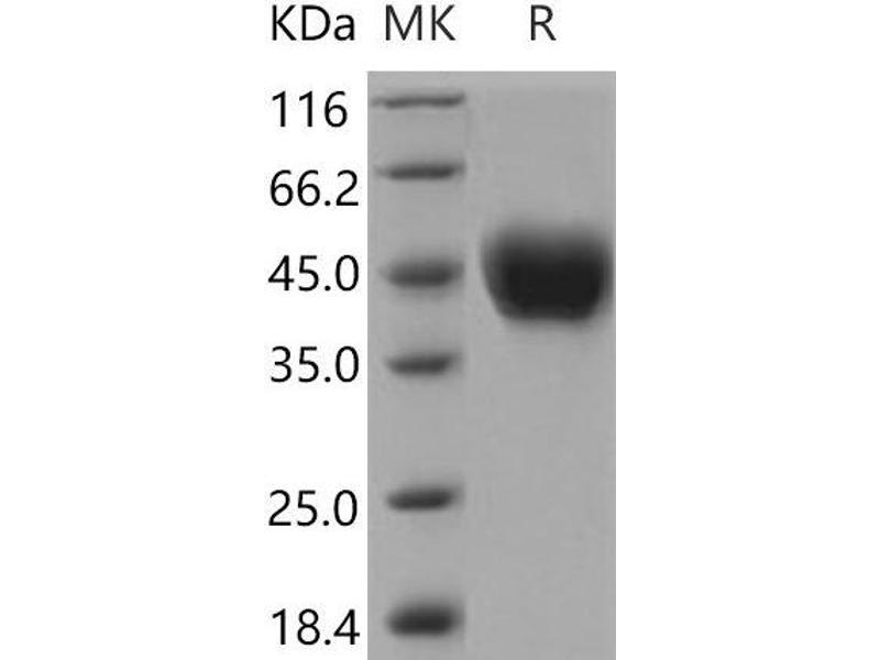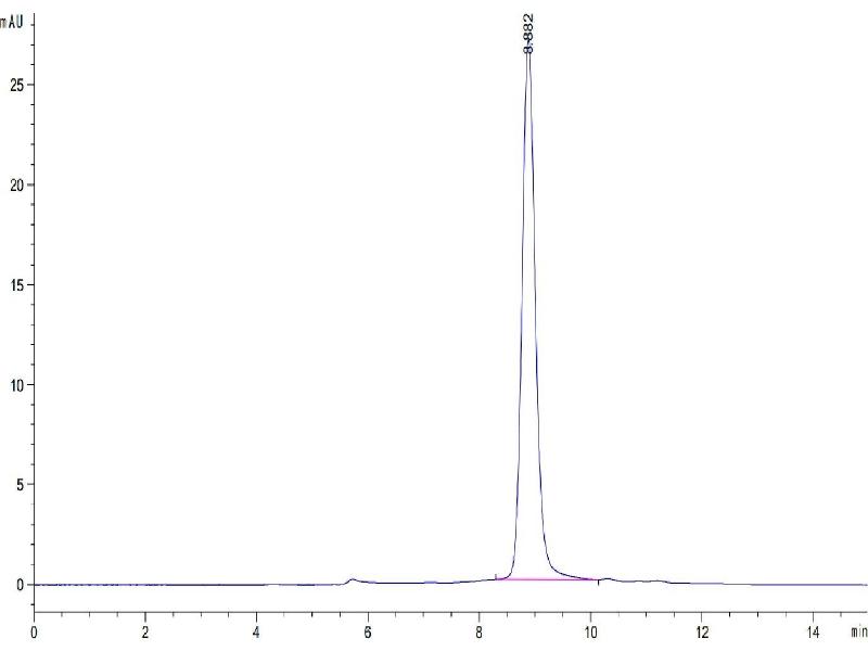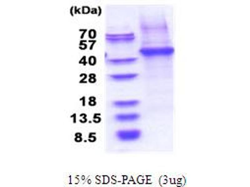 The purity of the protein is greater than 85 % as determined by SDS-PAGE and Coomassie blue staining.
