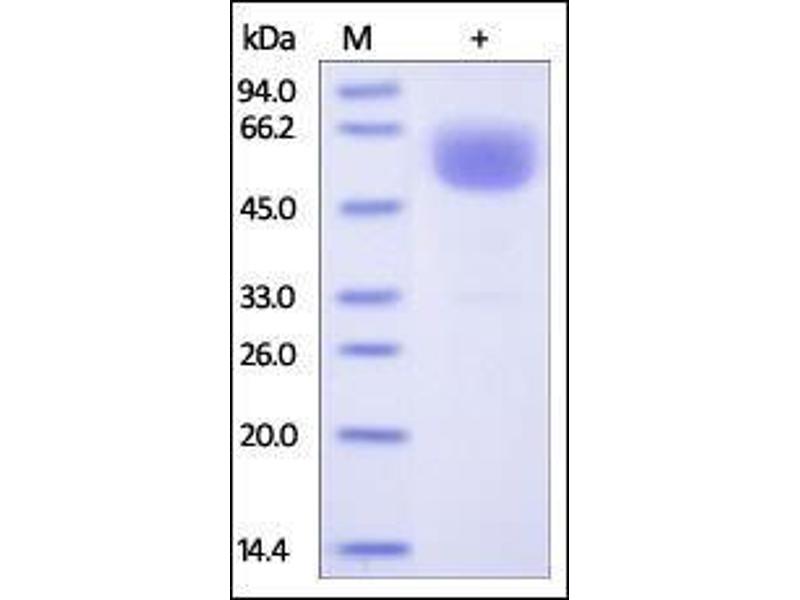 The purity of the protein is greater than 95 % as determined by SDS-PAGE and Coomassie blue staining.