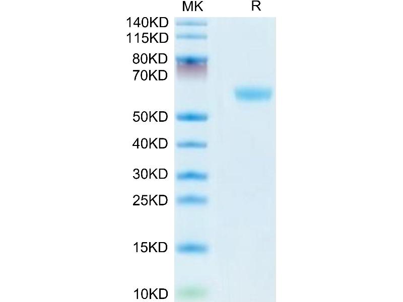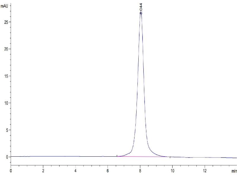 The purity of the protein is greater than 95 % as determined by SDS-PAGE and Coomassie blue staining.