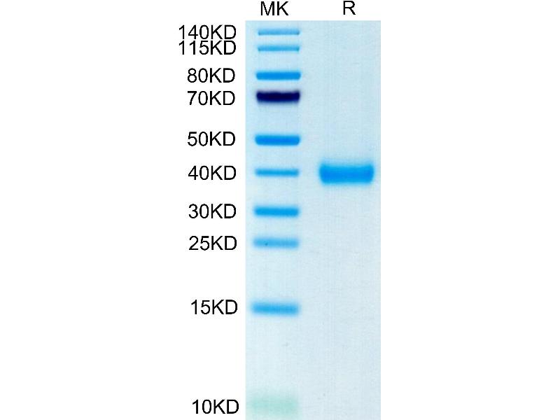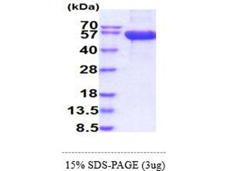The purity of the protein is greater than 95 % as determined by SDS-PAGE and Coomassie blue staining.
