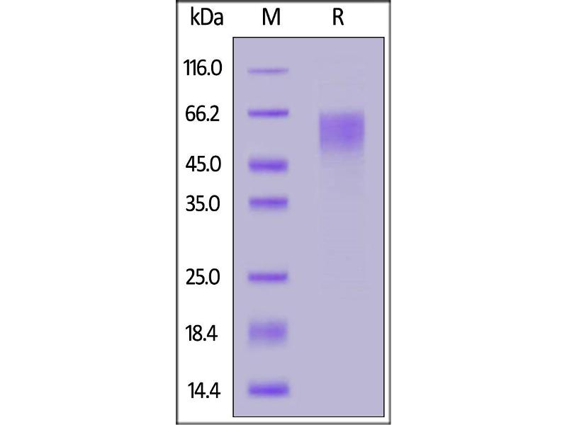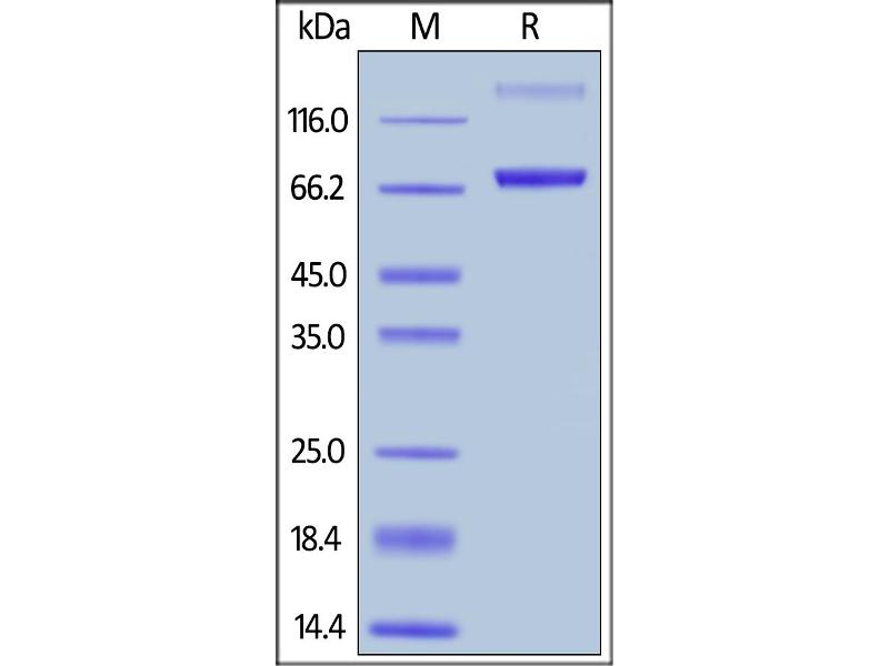 The purity of the protein is greater than 95 % as determined by SDS-PAGE and Coomassie blue staining.