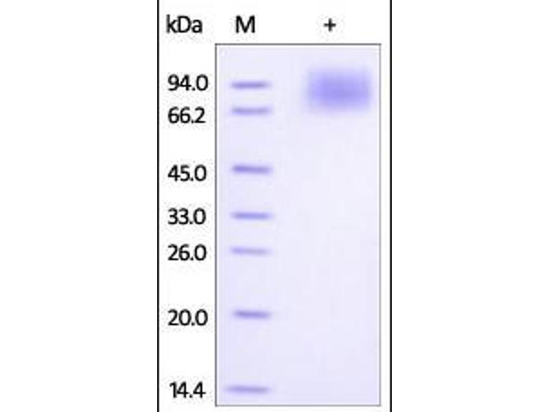 The purity of the protein is greater than 85 % as determined by SDS-PAGE and Coomassie blue staining.
