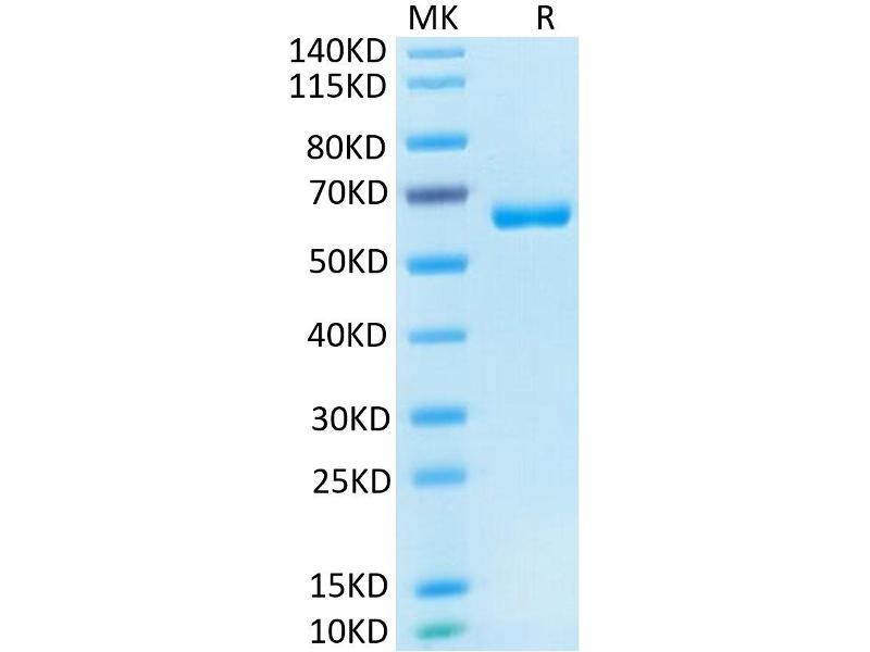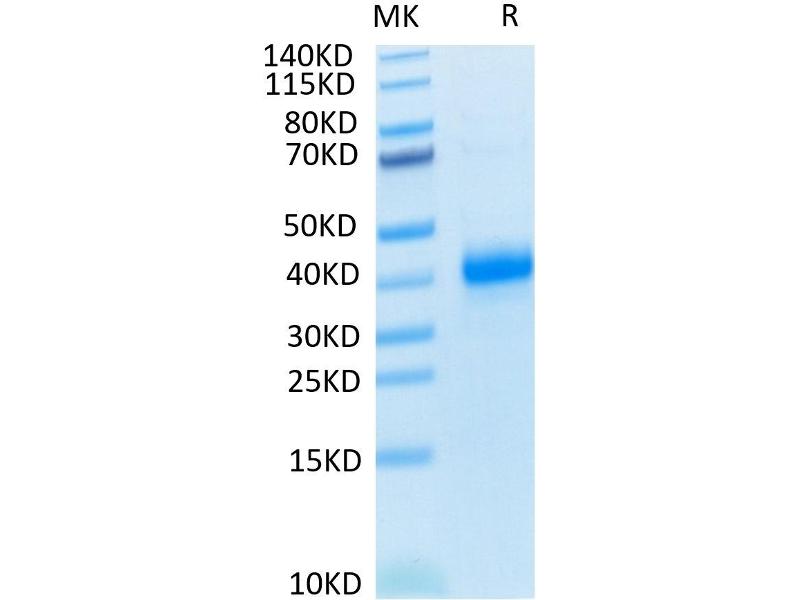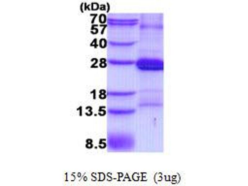 The purity of the protein is greater than 85 % as determined by SDS-PAGE and Coomassie blue staining.