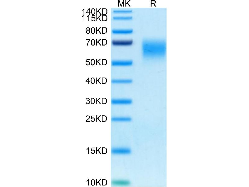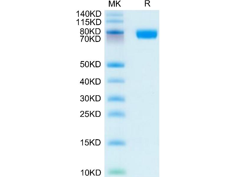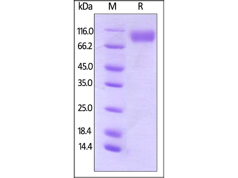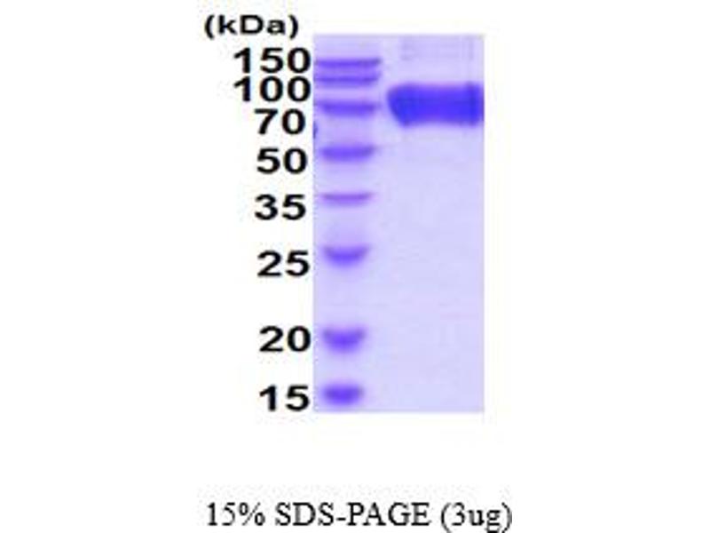 The purity of the protein is greater than 85 % as determined by SDS-PAGE and Coomassie blue staining.