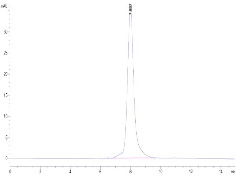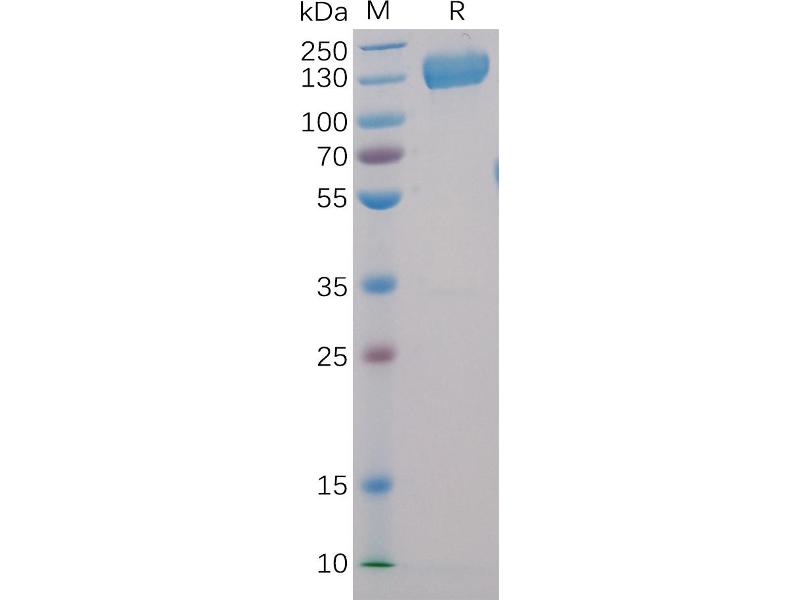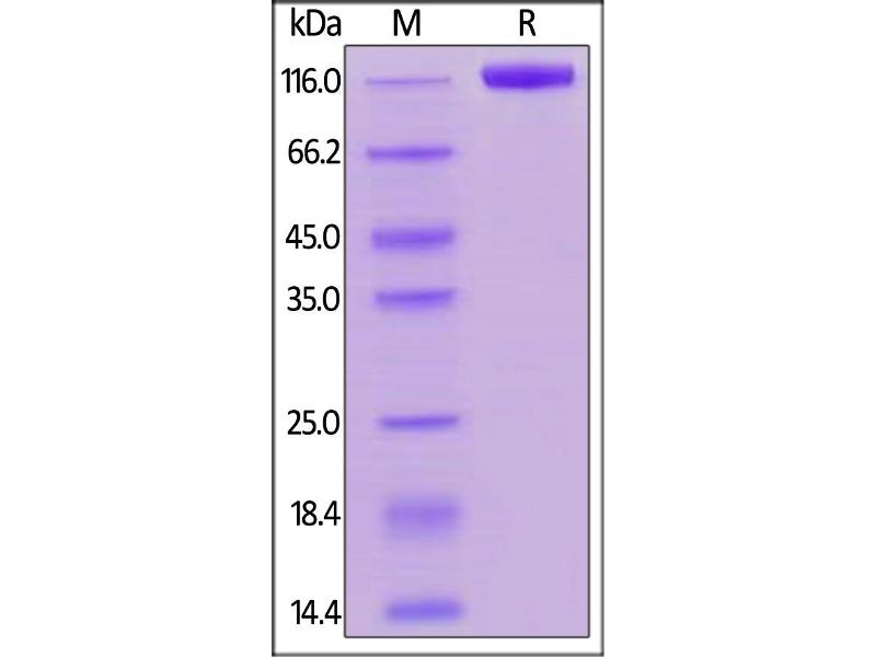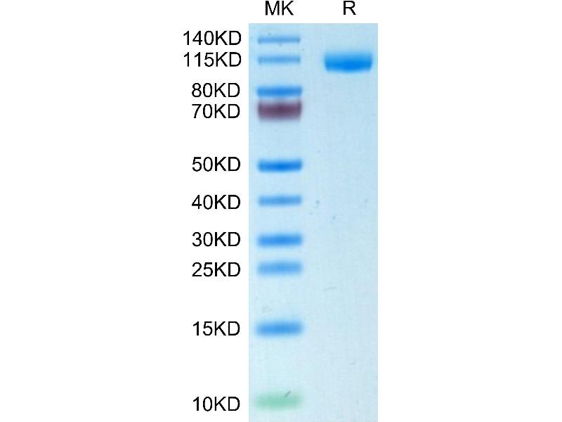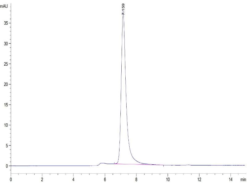 The purity of the protein is greater than 95 % as determined by SDS-PAGE and Coomassie blue staining.