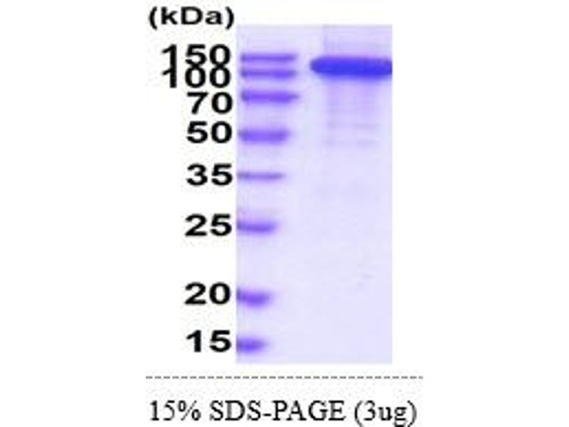 The purity of the protein is greater than 85 % as determined by SDS-PAGE and Coomassie blue staining.