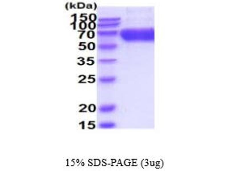 The purity of the protein is greater than 95 % as determined by SDS-PAGE and Coomassie blue staining.