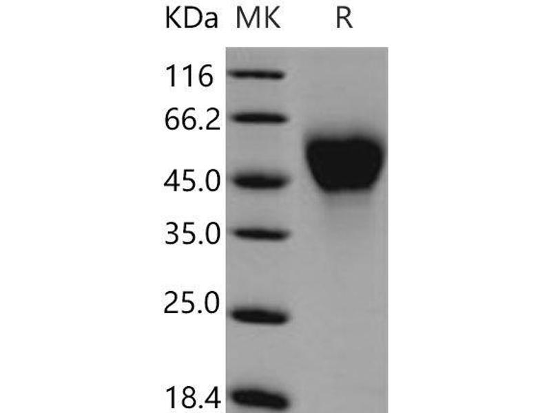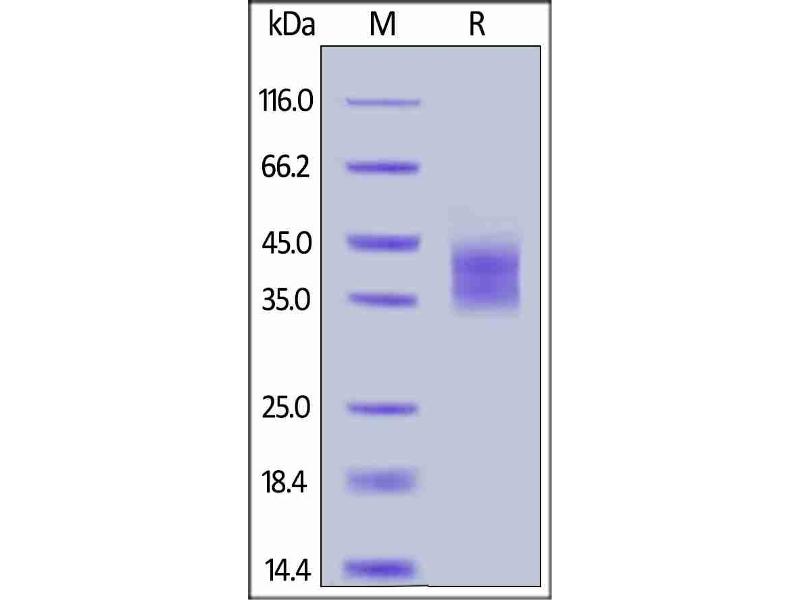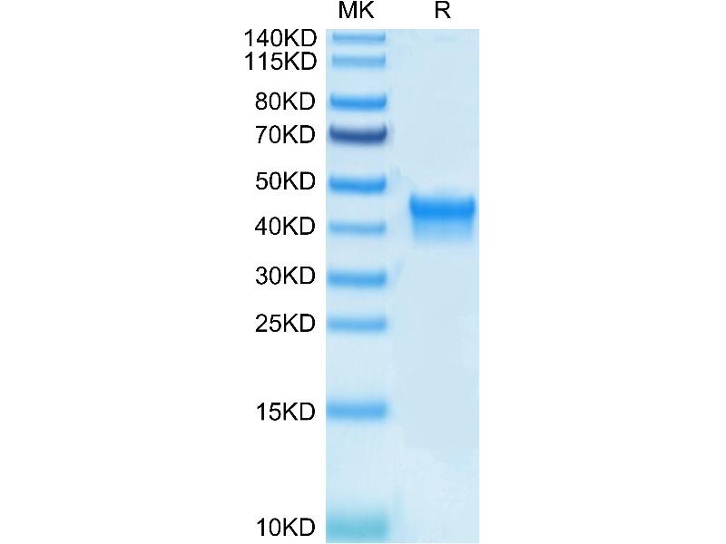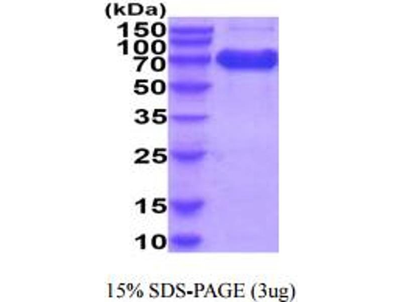 The purity of the protein is greater than 95 % as determined by SDS-PAGE and Coomassie blue staining.