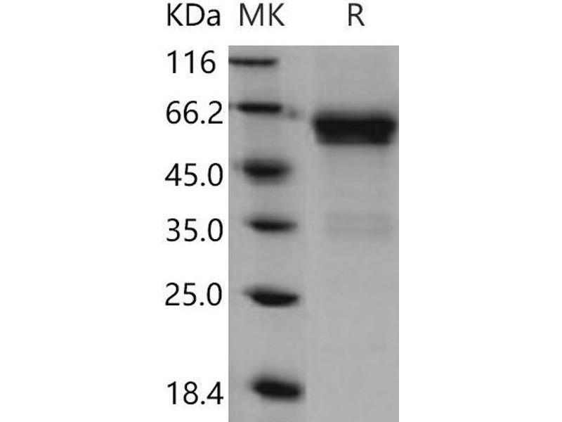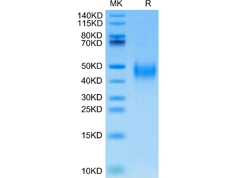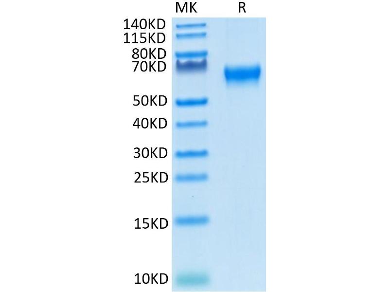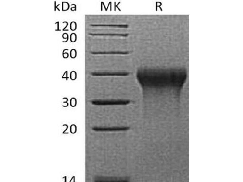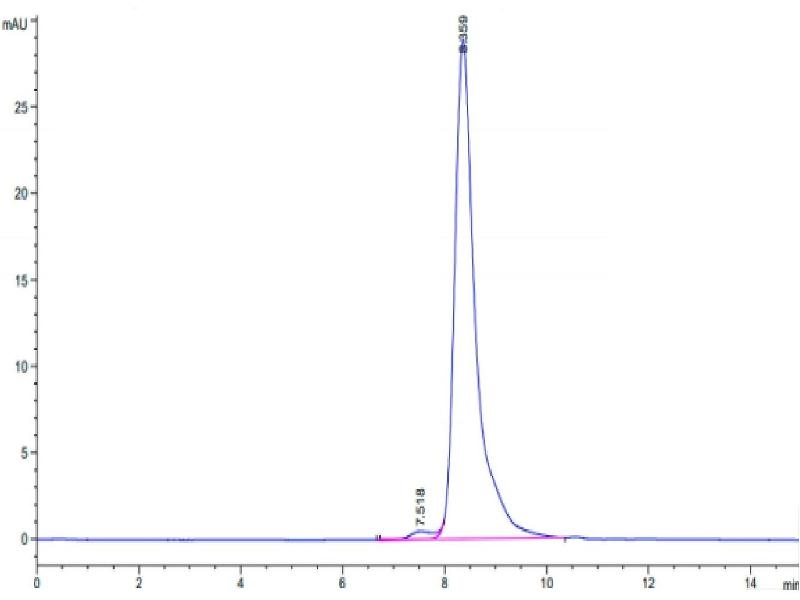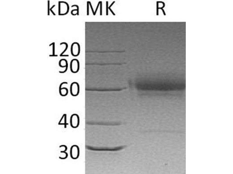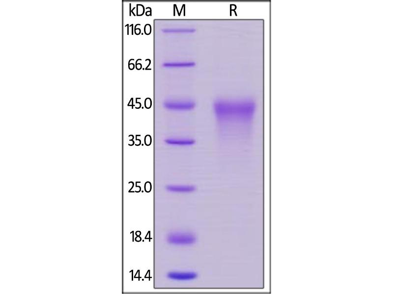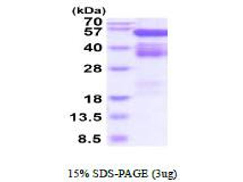 The purity of the protein is greater than 95 % as determined by SDS-PAGE and Coomassie blue staining.
