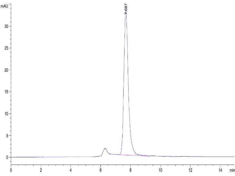 The purity of the protein is greater than 95 % as determined by SDS-PAGE and Coomassie blue staining.
