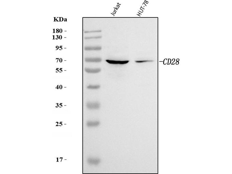 CD28 Reaktivität: Human, Maus, Ratte, Rind (Kuh), Schwein, Schaf, Hund, Meerschweinchen, Pferd, Kaninchen WB Wirt: Kaninchen Polyclonal unconjugated