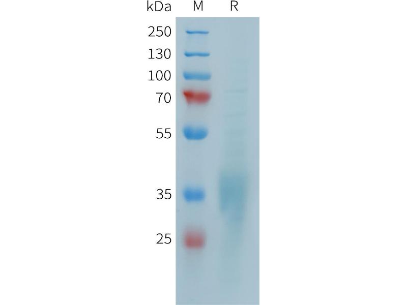 The purity of the protein is greater than 95 % as determined by SDS-PAGE and Coomassie blue staining.