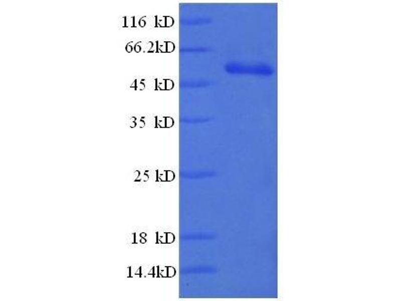 The purity of the protein is greater than 85 % as determined by SDS-PAGE and Coomassie blue staining.