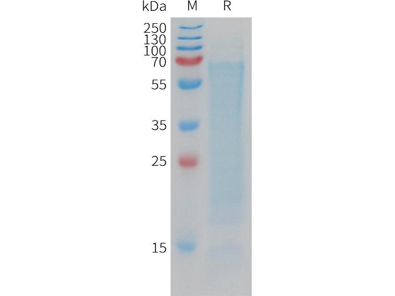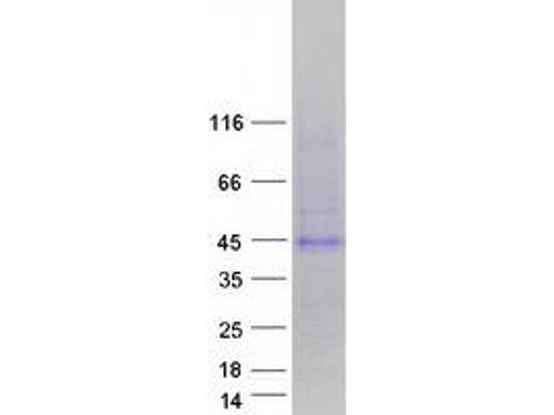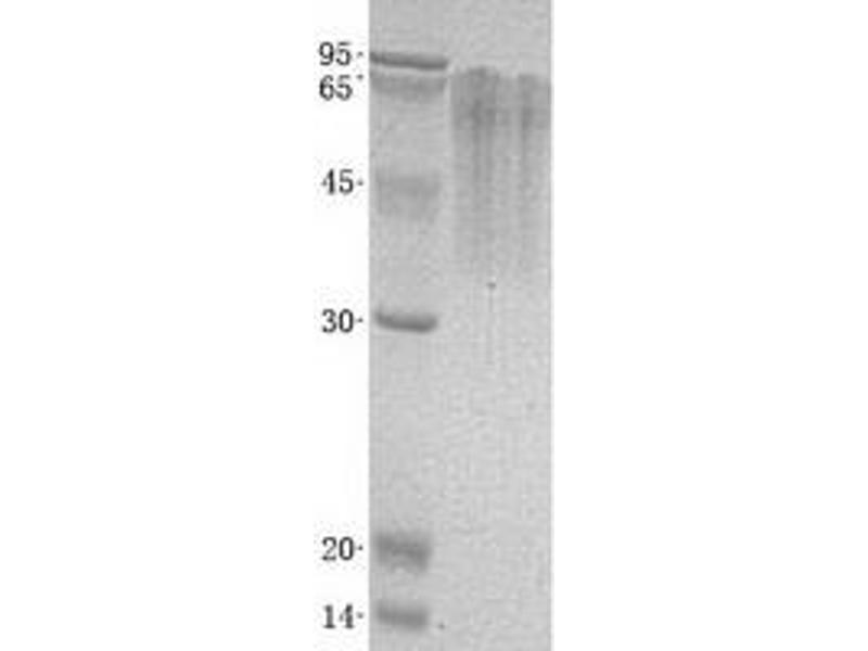 The purity of the protein is greater than 85 % as determined by SDS-PAGE and Coomassie blue staining.