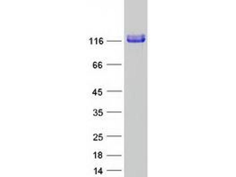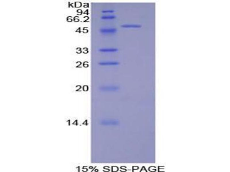 The purity of the protein is greater than 85 % as determined by SDS-PAGE and Coomassie blue staining.